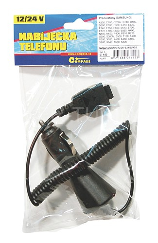 Cestovní nabíječka mobilních telefonů do automobilu. Zástrčka do zásuvky automobilového zapalovače, napájení 12V nebo 24V.