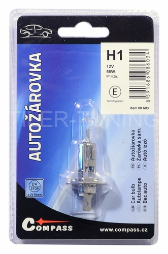 Halogenová autožárovka 12V, homologace E. Sklo žárovky s UV filtrem - žárovka je vhodná pro všechny druhy světlometů.